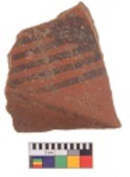 | Description / विवरण | Specimen of black on red ware with decorative geometric Linear Pattern painting. |