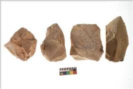 | Description / विवरण | Specimen of fluted cores showing impressions of blades removed from almost all the sides. |