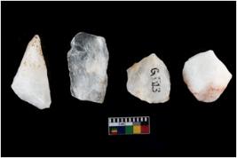 | Description / विवरण | A specimen of a fluted core having several broad fluted marks indicating the detached blades from it |