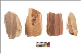| Description / विवरण | Specimen of fluted cores showing impressions of blades removed from almost all the sides. |