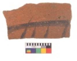 | Description / विवरण | Specimen of black on red ware with decorative geometric Linear Pattern painting. |