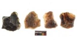 | Description / विवरण | There are n-4 of utilized flake cores. There are multidirectional irregular dominant scar pattern on both dorsal and ventral face of the cores. Some of them bulge of percussion and some are flat flake cores. |