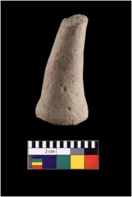| Description / विवरण | A partailly broken specimen of a teracotta gamesman with truncated ends. The base of the this object is falt and it s flares slightly more than the apex. |