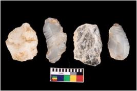 | Description / विवरण | Four flakes; some of them are tapering at one end with many of them with sharp edges. |