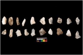 | Description / विवरण | Specimen of flake tool with prominent flaking marks. It made up of a short flakes with sides trimmed. |