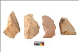 | Description / विवरण | Four flakes; most of them are tapering at one end with few having sharp edges. |