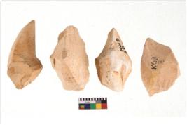 | Description / विवरण | Four flakes; most of them are tapering at one end with few having sharp edges. |