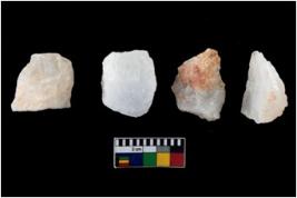 | Description / विवरण | A specimen of a fluted core having several broad fluted marks indicating the detached blades from it |