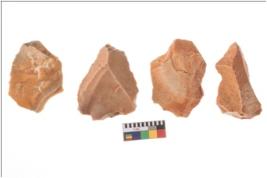 | Description / विवरण | Four worked flakes, some are uneven whereas some are tapering at one end. Most of them are having sharp edges. |