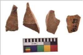 | Description / विवरण | Four worked utilised flakes with sharp edges. Most of them are tapering at one end. |