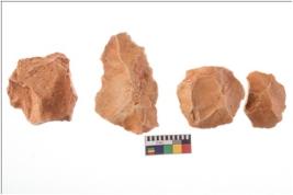 | Description / विवरण | Four worked flakes, some are uneven whereas some are tapering at one end. Most of them are having sharp edges. |