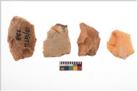 | Description / विवरण | Four worked flakes, some are uneven whereas some are tapering at one end. Most of them are having sharp edges. |