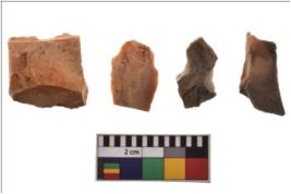 | Description / विवरण | Four worked utilised flakes with sharp edges. Most of them are tapering at one end. |