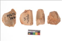 | Description / विवरण | Four worked flakes, some are uneven whereas some are tapering at one end. Most of them are having sharp edges. |