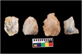 | Description / विवरण | Four flakes; some of them are tapering at one end with many of them with sharp edges. |