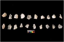 | Description / विवरण | Specimen of flake tool with prominent flaking marks. It made up of a short flakes with sides trimmed. |