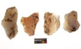 | Description / विवरण | There are n-4 of utilized flake cores. There are multidirectional irregular dominant scar pattern on both dorsal and ventral face of the cores. Some of them bulge of percussion and some are flat flake cores. |