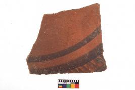| Description / विवरण | Specimen of black on red ware with decorative black pigment. |