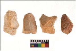 | Description / विवरण | Four flakes; most of them are tapering at one end with few having sharp edges. |