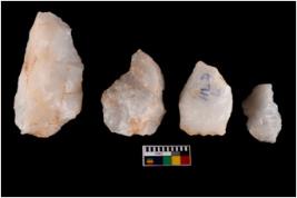| Description / विवरण | Four worked utilised flakes with sharp edges. Most of them are tapering at one end. |