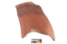| Description / विवरण | Specimen of black on red ware with decorative geometric Linear Pattern painting. |