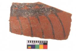 | Description / विवरण | Specimen of black on red ware with decorative black pigment. |