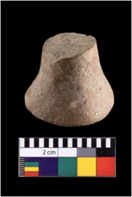 | Description / विवरण | A partailly broken specimen of a teracotta gamesman with truncated ends. The base of the this object is falt and it s flares slightly more than the apex. |