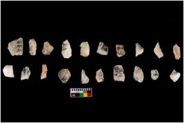 | Description / विवरण | Specimen of flake tool with prominent flaking marks. It made up of a short flakes with sides trimmed. |