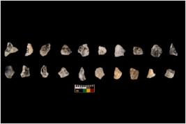| Description / विवरण | Specimen of flake tool with prominent flaking marks. It made up of a short flakes with sides trimmed. |