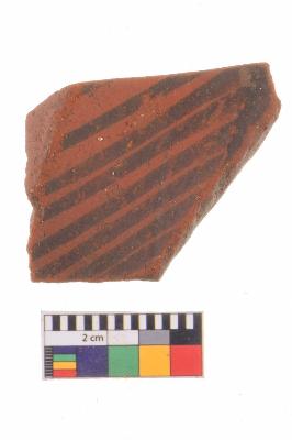 | Description / विवरण | Specimen of black on red ware with decorative geometric Linear Pattern painting. |