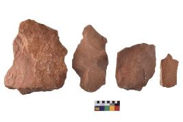 | Description / विवरण | There are n-4 of utilized flake cores. There are multidirectional irregular dominant scar pattern on both dorsal and ventral face of the cores. |