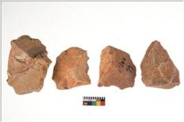 | Description / विवरण | Four flakes; most of them are tapering at one end with few having sharp edges. |