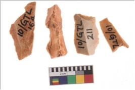 | Description / विवरण | Four worked flakes, some are uneven whereas some are tapering at one end. Most of them are having sharp edges. |