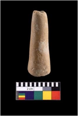 | Description / विवरण | A partailly broken specimen of a teracotta gamesman with truncated ends. The base of the this object is falt and it s flares slightly more than the apex. |