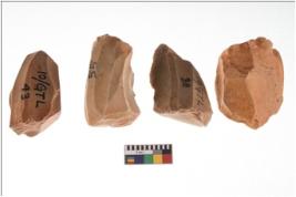| Description / विवरण | Specimen of fluted cores showing impressions of blades removed from almost all the sides. |