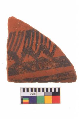 | Description / विवरण | Specimen of black on red ware with decorative geometric painting. |