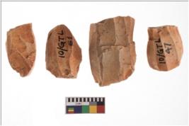 | Description / विवरण | Specimen of fluted cores showing impressions of blades removed from almost all the sides. |