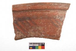 | Description / विवरण | Specimen of black on red ware with decorative geometric Linear Pattern painting. |