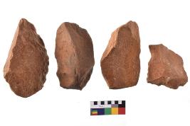 | Description / विवरण | There are n-4 of utilized flake cores. There are multidirectional irregular dominant scar pattern on both dorsal and ventral face of the cores. |