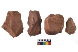 | Description / विवरण | There are n-4 of utilized flake cores. There are multidirectional irregular dominant scar pattern on both dorsal and ventral face of the cores. |