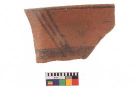 | Description / विवरण | Specimen of black on red ware with decorative geometric Linear Pattern painting. |