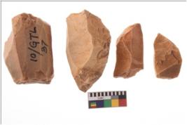 | Description / विवरण | Specimen of fluted cores showing impressions of blades removed from almost all the sides. |