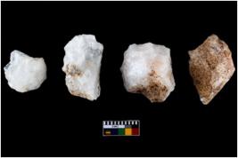 | Description / विवरण | A specimen of a fluted core having several broad fluted marks indicating the detached blades from it. |