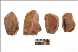 | Description / विवरण | Specimen of fluted cores showing impressions of blades removed from almost all the sides. |