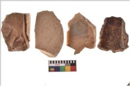 | Description / विवरण | Four worked utilised flakes with sharp edges. Most of them are tapering at one end. |