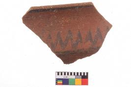 | Description / विवरण | Specimen of black on red ware with decorative geometric zigzag Pattern painting. |