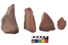 | Description / विवरण | There are n-4 of utilized flake cores. There are multidirectional irregular dominant scar pattern on both dorsal and ventral face of the cores. |
