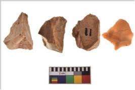 | Description / विवरण | Four worked utilised flakes with sharp edges. Most of them are tapering at one end. |