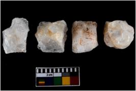 | Description / विवरण | There are n-4 of cores. All of them are intact fully fluted cores without any trace of crested ridge flakes made up of Quartz. |