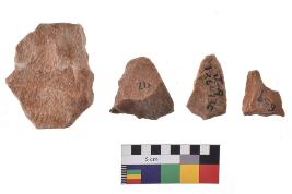 | Description / विवरण | There are n-4 of utilized flake cores. There are multidirectional irregular dominant scar pattern on both dorsal and ventral face of the cores. |